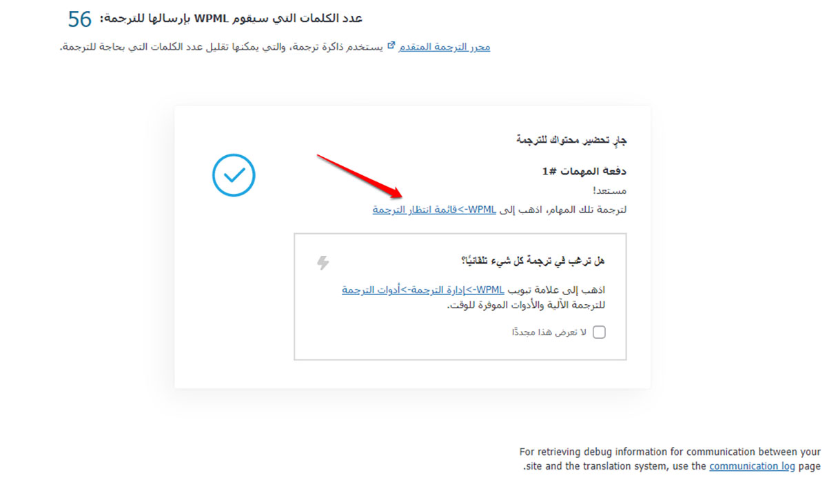 اضغط على زر قائمة انتظار الترجمة كما في الصورة أدناه.