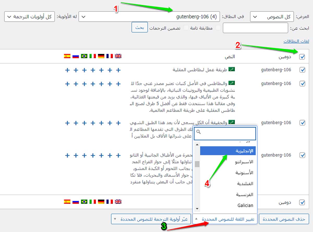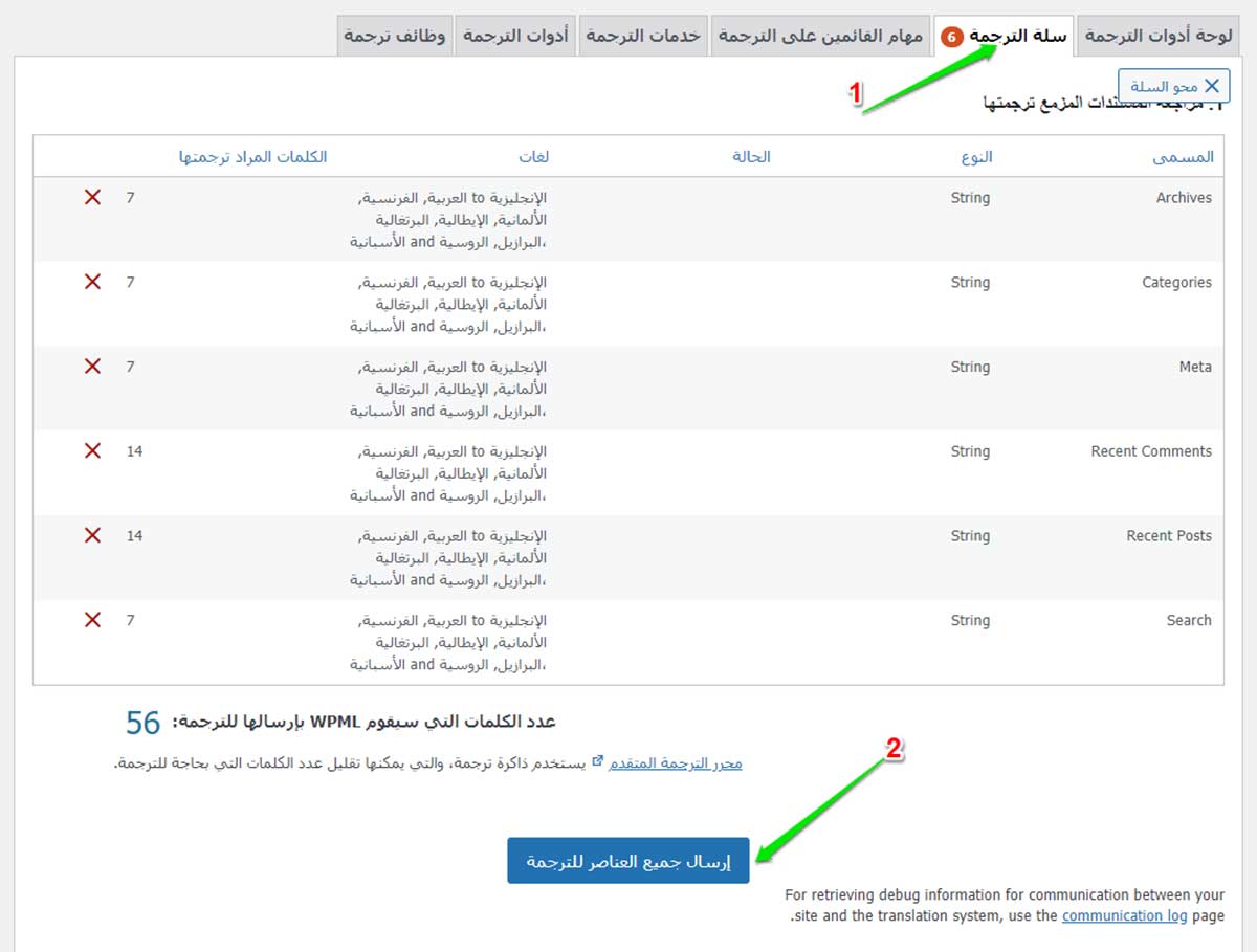 2- ترجمة النصوص من خلال أداة الترجمة المتقدمة WPML Translation Management