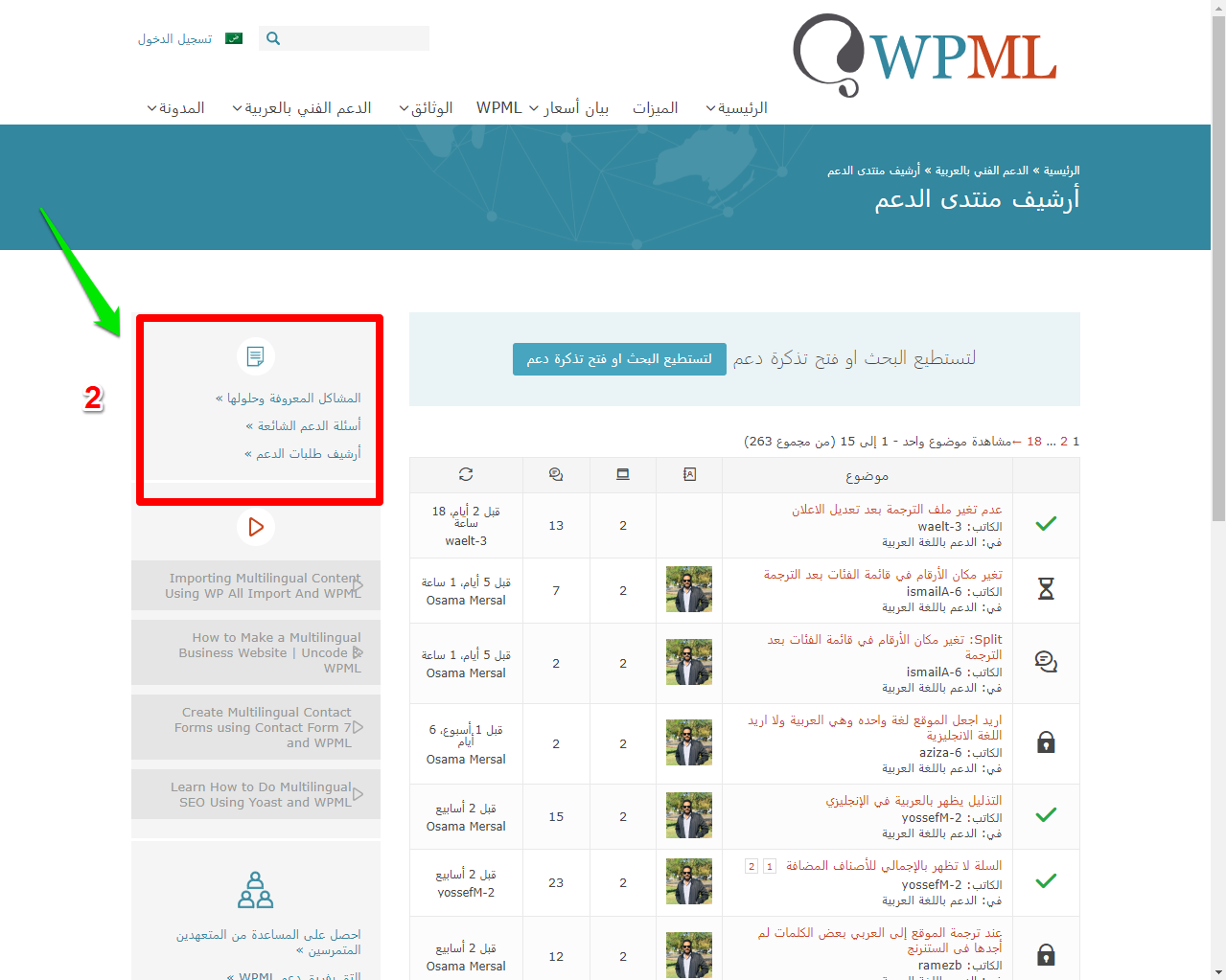 حيث يمكنك بكل بساطة البحث عن المشكلة التي تواجهها في أرشيف منتدى دعم إضافة WPML وأيضًا لا تقلق فالمنتدى يدعم اللغة العربية، وفكرة الأرشيف بكل بساطة أن كل شخص يستخدم إضافة WPML ويتعثر في مشكلة ما ويجد الحل. يتم أرشفة سؤاله أو مشكلته وحلها أيضًا، وبالتالي يحتوي أرشيف منتدى الدعم تقريبًا على أغلب المشكلات التي ستواجهك في موقعك فيما يخص إضافة WPML.