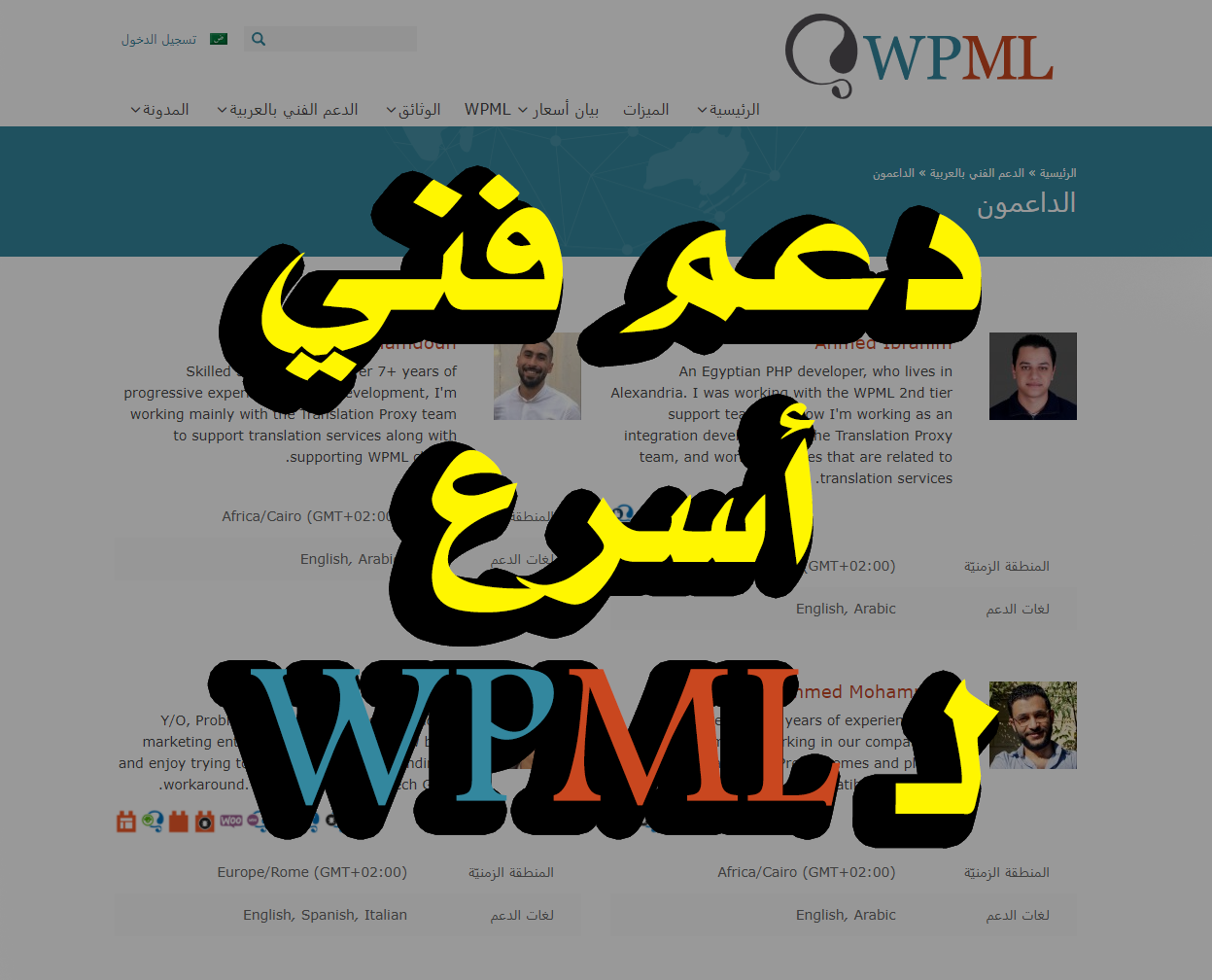ولعل أهم ما يميز إضافة WPML أنها توفر لك دعم فني متميز باللغة العربية بالإضافة لثمانية لغات أخرى، خلال ستة أيام في الأسبوع. عدا يوم الأحد. وطيلة النهار بما يعادل تسعة عشر ساعة يوميًا.