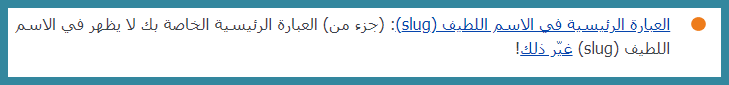 • العبارة الرئيسية في الاسم اللطيف (Slug)