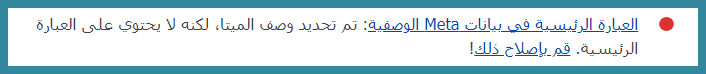 • اللون الأحمر على أن المحتوى الخاص بك ليس متوافقا مع شروط تصدر نتائج محركات البحث.